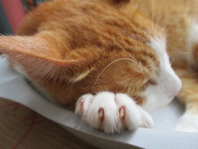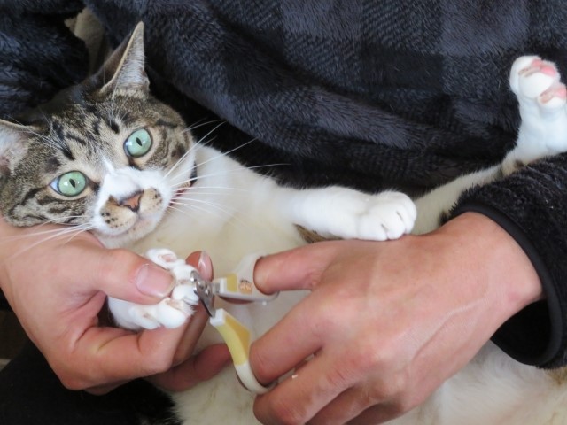 昼寝しているスキを狙ってみたり、抱っこしながら2人がかりで切ってみたり、ペーストおやつに夢中になっているところを狙ってみたり、といった成功例もあります。何事もアイデアは必要ですね。