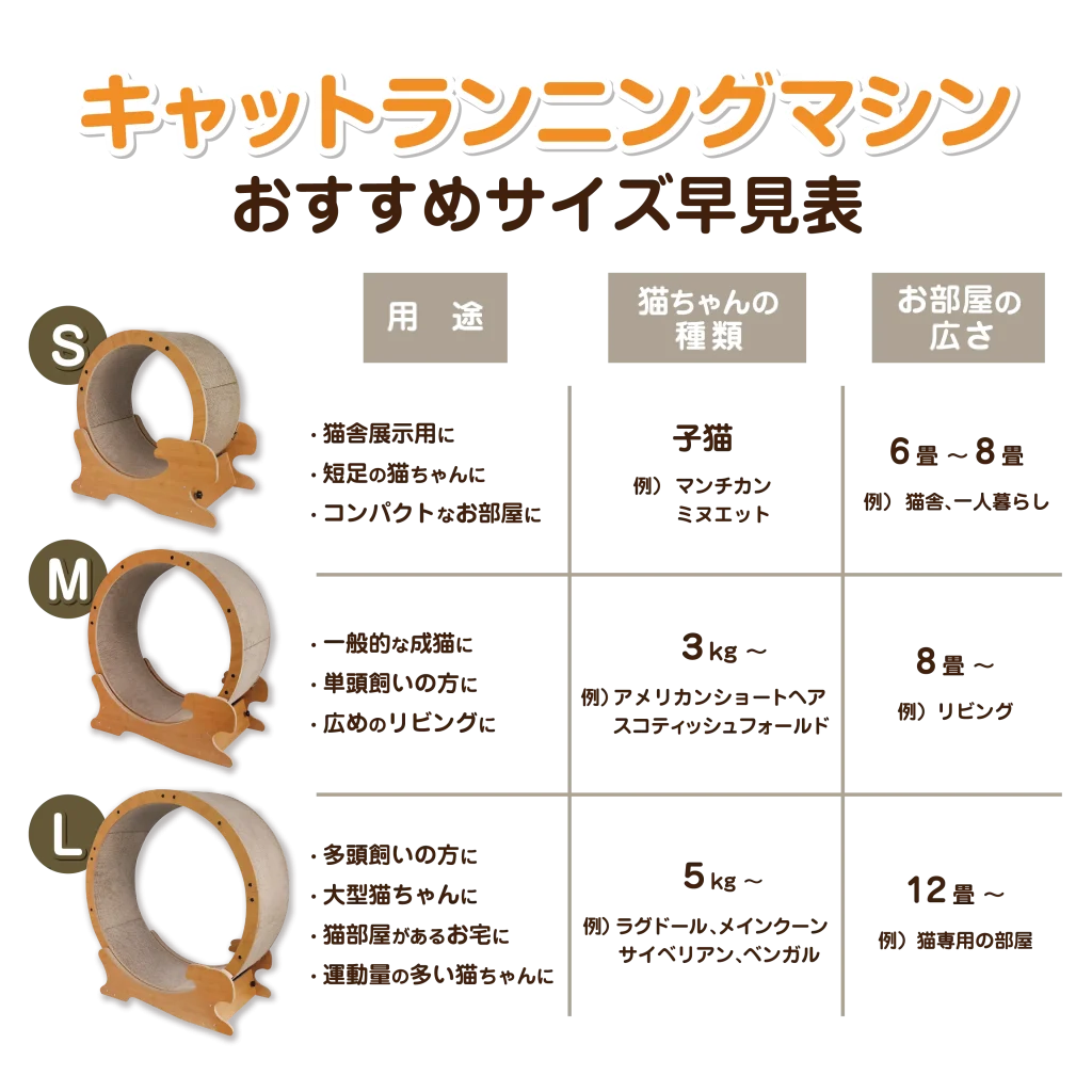 猫ちゃんに合わせて選べる3サイズ