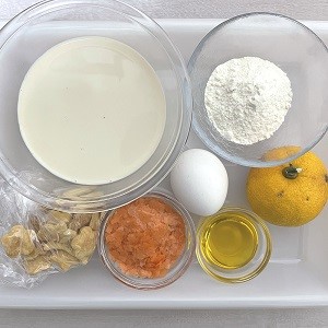 ① 豆乳は分量のうち大さじ1杯分を取っておく。残りの豆乳と柚子絞り汁を混ぜる。
