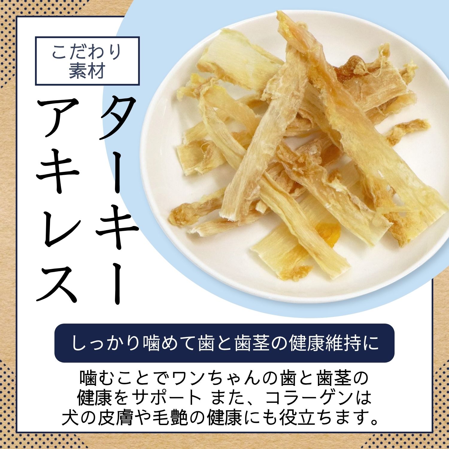 貴重なターキーのアキレス腱を小型犬も食べやすい長さにカットしたショートタイプ。