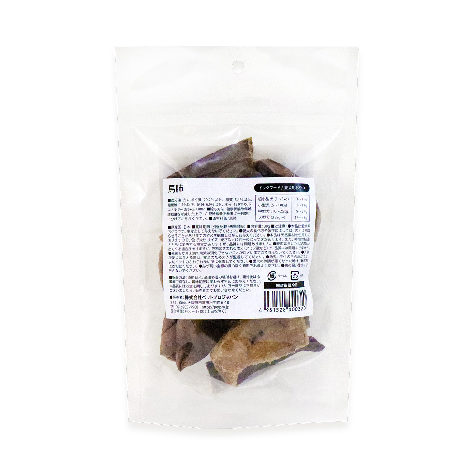 馬の肺はスポンジ状になっているのでシニアにもオススメです。アレルギーの子にも配慮。