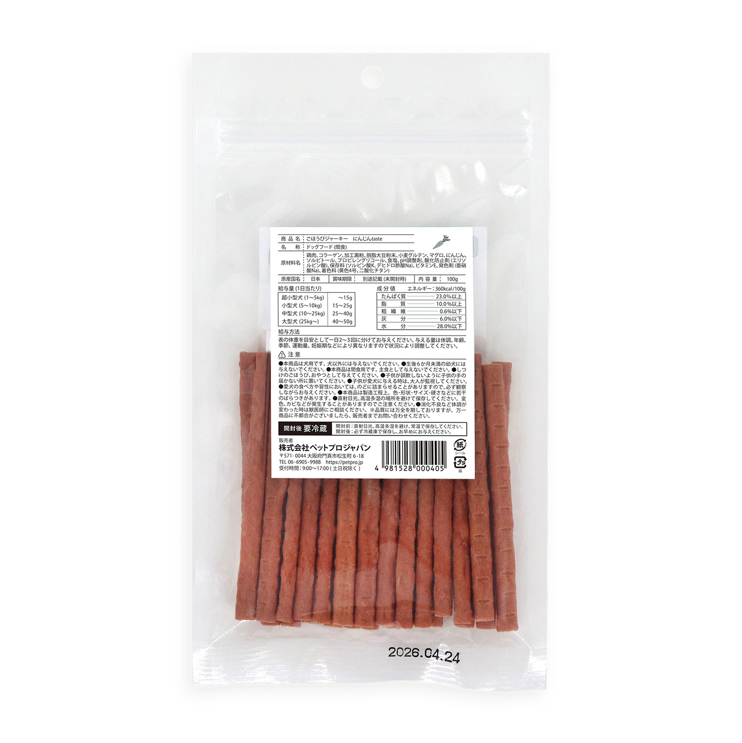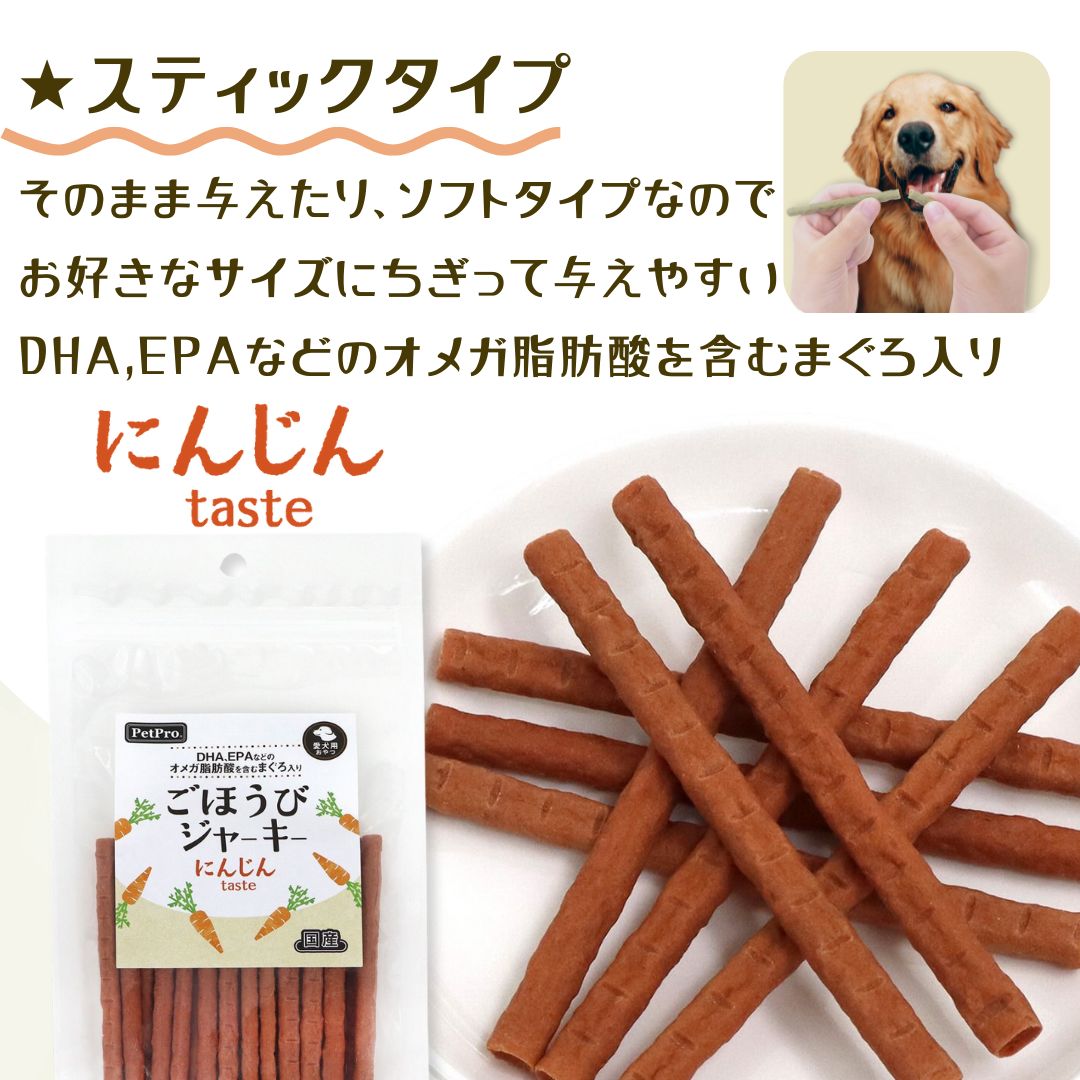与えやすいスティックタイプ、にんじんtasteのワンちゃん用おやつ。