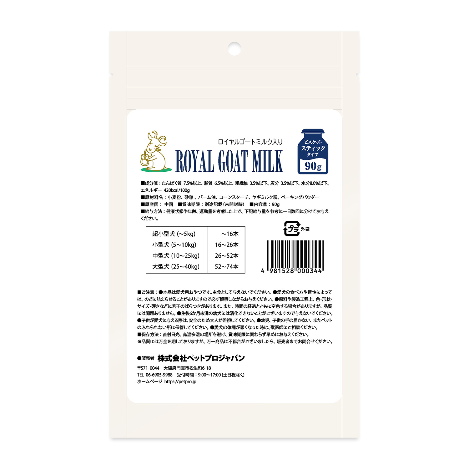 ロイヤルゴートミルク入りビスケット スティックタイプ 90g