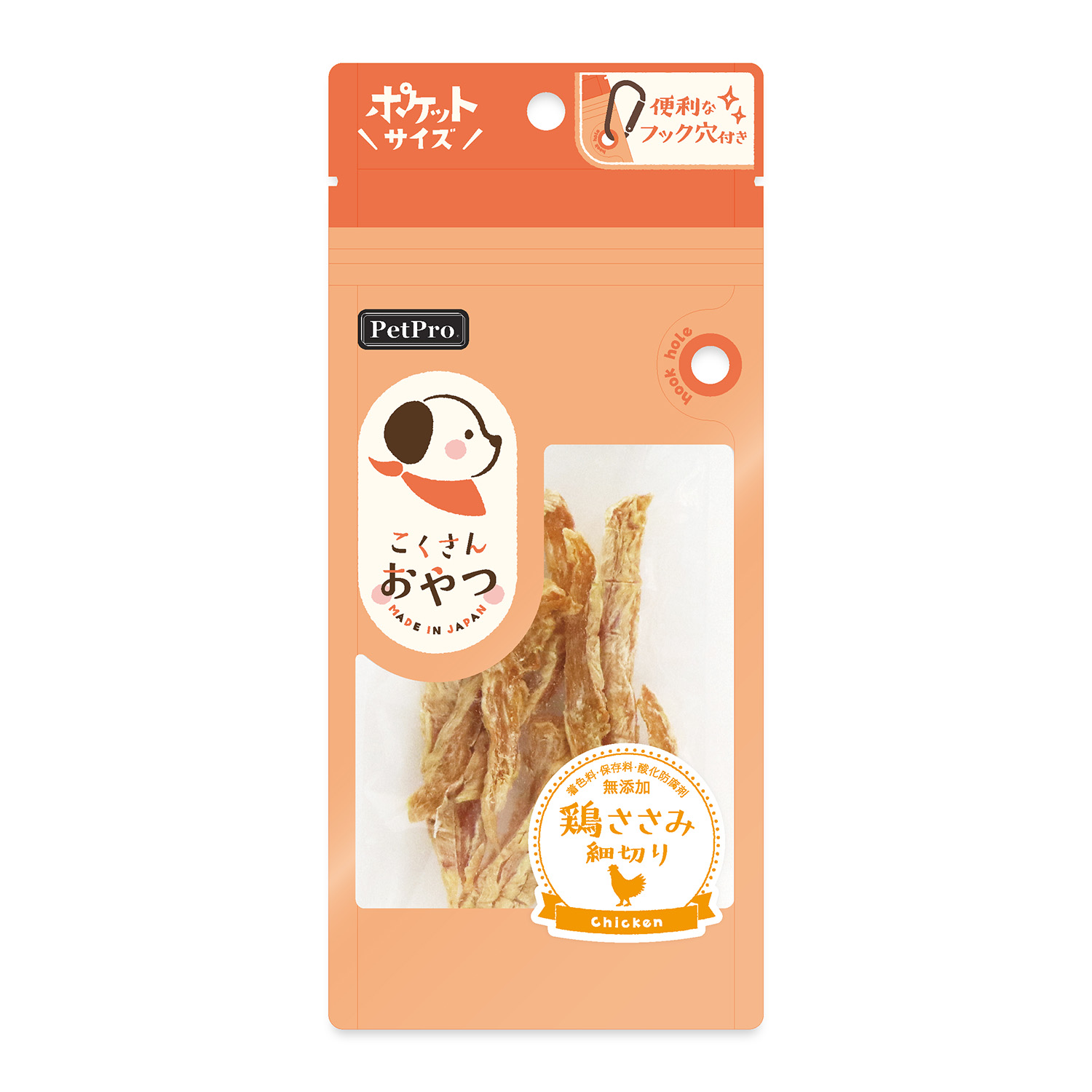 ポケットサイズとカラビナなどを付けられるフック穴付きでお出かけ時などに便利。国産の無添加おやつで超小型犬や小型犬も食べやすいサイズ感です。