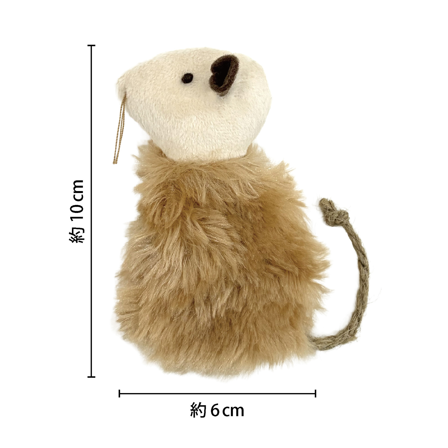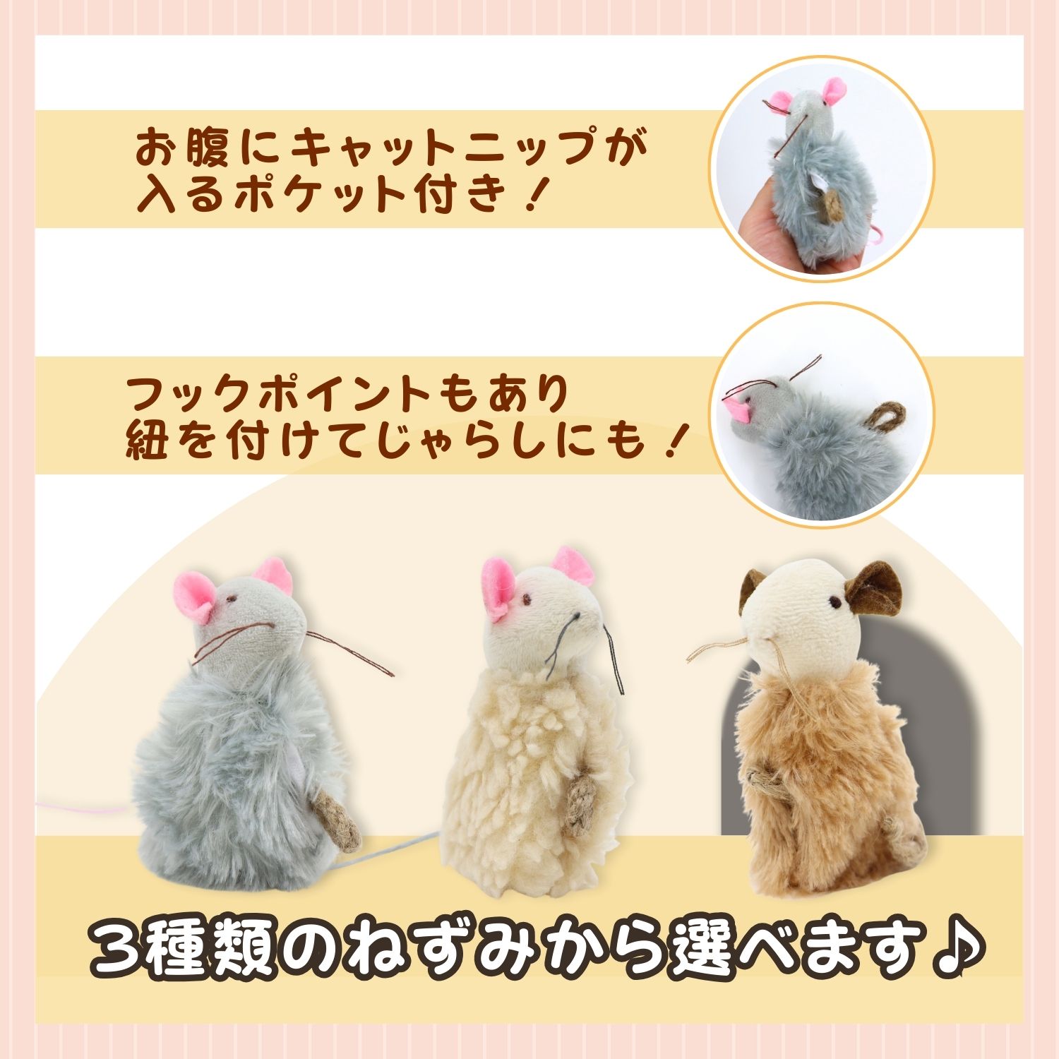 ねずみモチーフの可愛いおもちゃ お腹にキャットニップが入るポケット付き(出し入れ自由)、フックポイントもあり紐を付けてじゃらしにも!