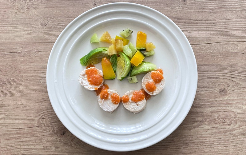 今回は、塩は不使用で作る鶏ハムに、やさしい甘みのにんじんソースを合わせ、彩り豊かな野菜を添えた一品をご紹介します。