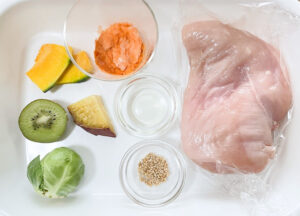 今回のレシピは、鶏むね肉を使った脂質控えめで消化にやさしい内容です。鶏むね肉は一度にまとめて作る量のため、残りは冷凍保存し、2週間を目安に使い切ってください。ほぐして普段のトッピングに活用するのもおすすめです。