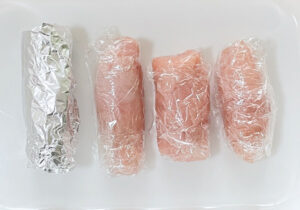 形が崩れないようラップできつめに包み、さらにアルミホイルでしっかりと巻いておきます。