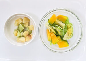焼き芋とキウイは、小さく食べやすい大きさに切ります。